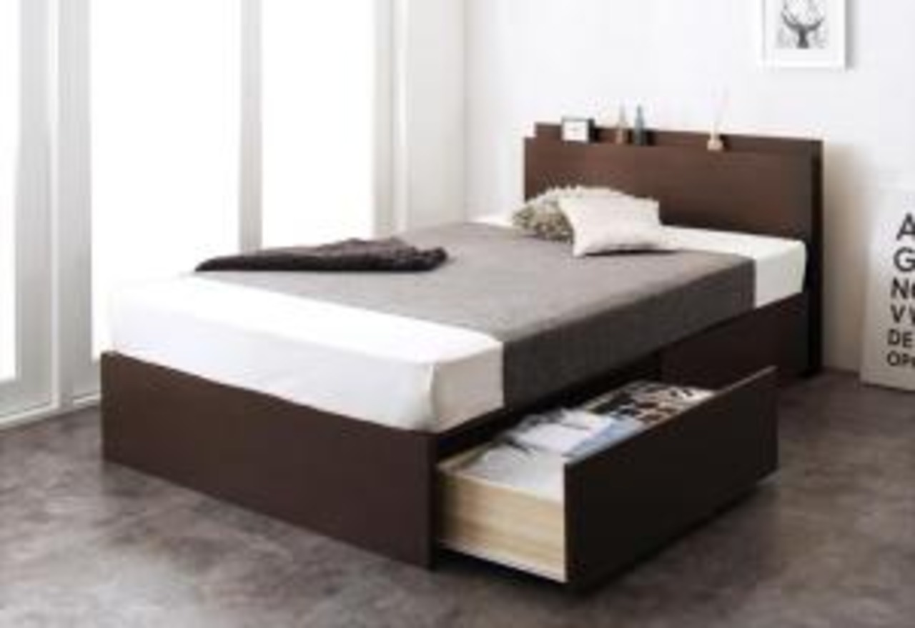 組立設置付 長く使える棚・コンセント付国産頑丈2杯収納ベッド スタンダードボンネルコイルマットレス付き ダブル