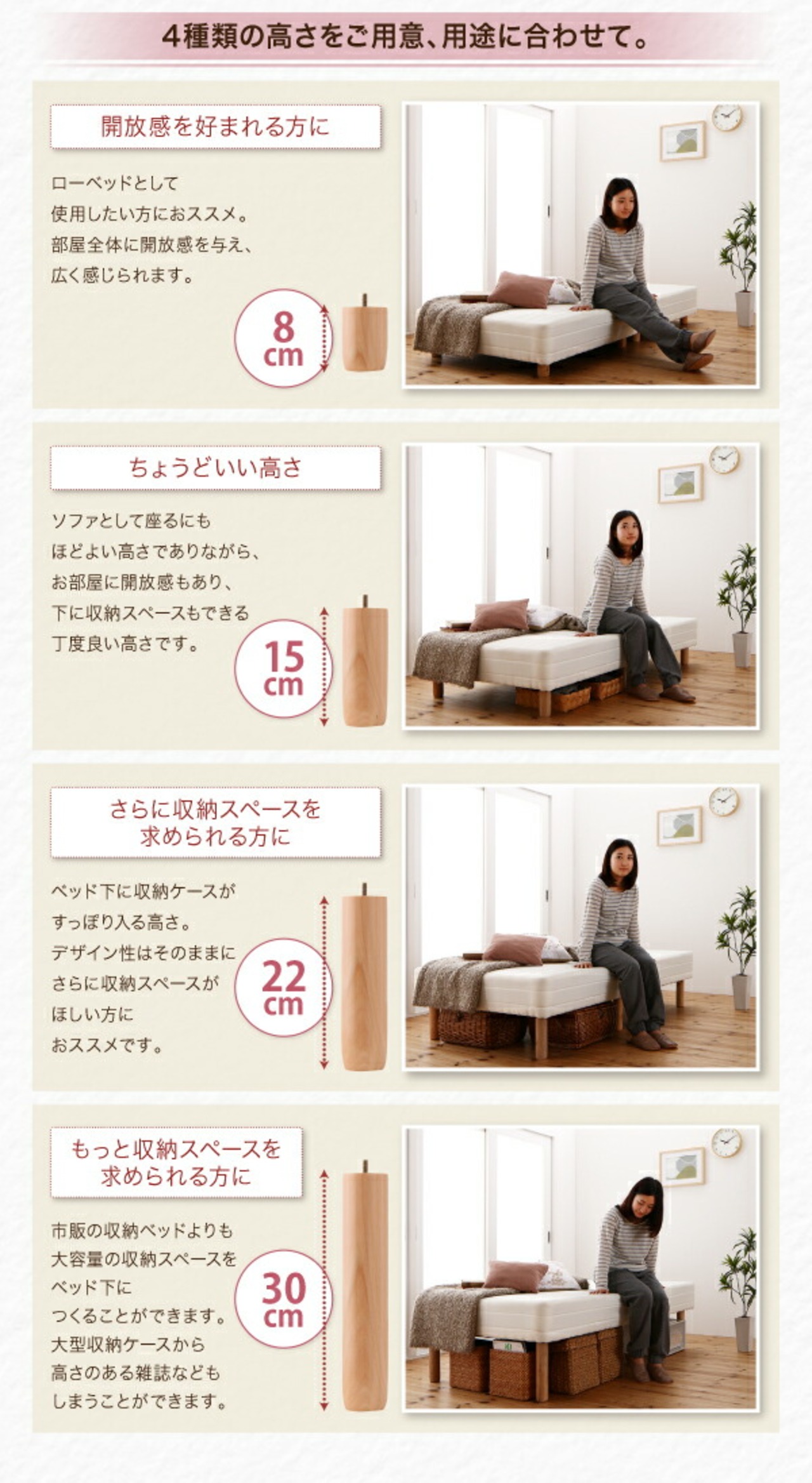 組立設置付き ショート丈分割式 脚付きマットレスベッド ボンネル お買い得ベッドパッド・シーツは別売り セミシングル ショート丈 脚8cm