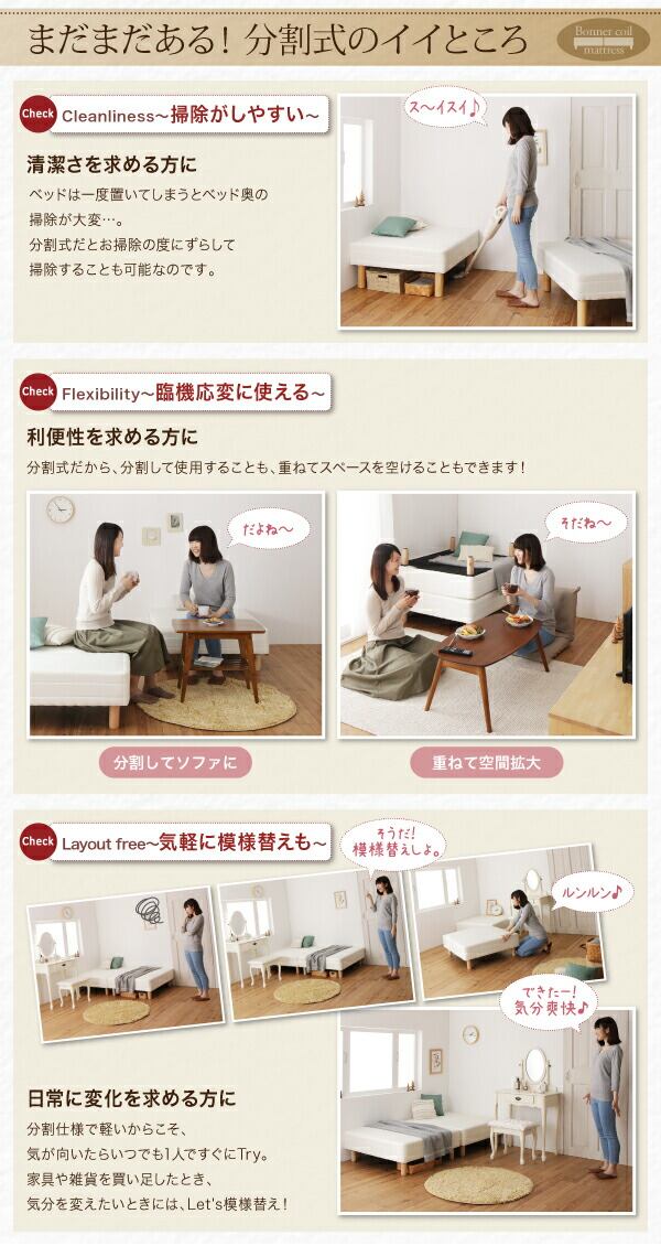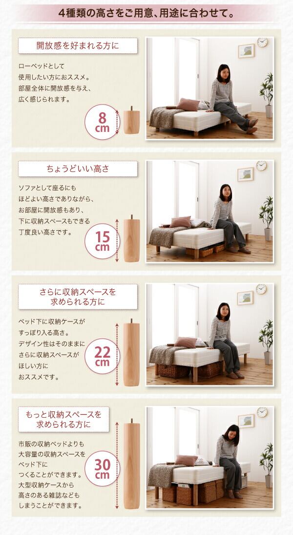 組立設置付き ショート丈分割式 脚付きマットレスベッド ボンネル マットレスベッド お買い得ベッドパッド・シーツは別売り セミダブル ショート丈 脚15cm