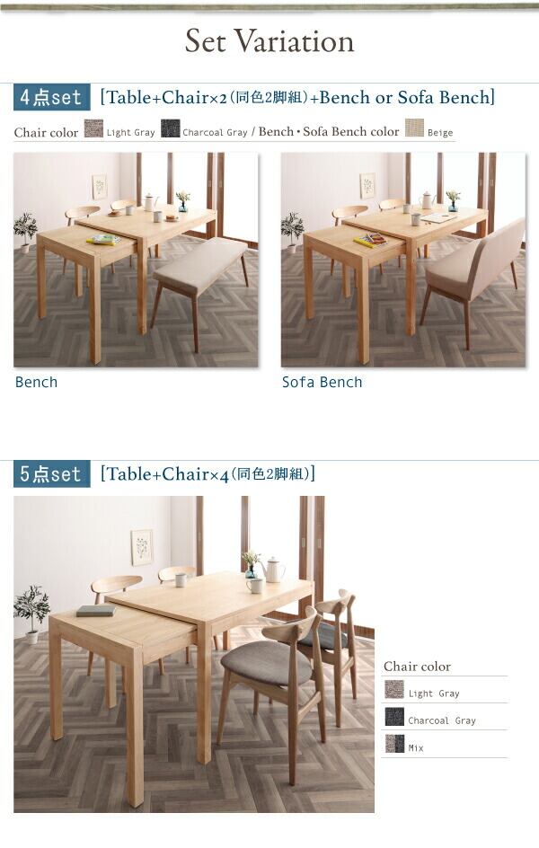 組立設置付き 北欧デザイン スライド伸縮テーブル ダイニングセット ダイニングチェア 2脚組