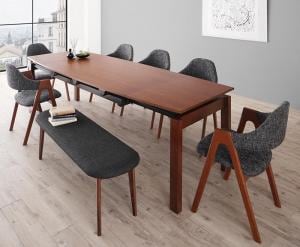 組立設置付き 北欧テイスト 天然木ウォールナット材 伸縮ダイニングセット 8点セット(テーブル+チェア6脚+ベンチ1脚) W140-240