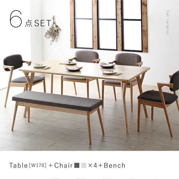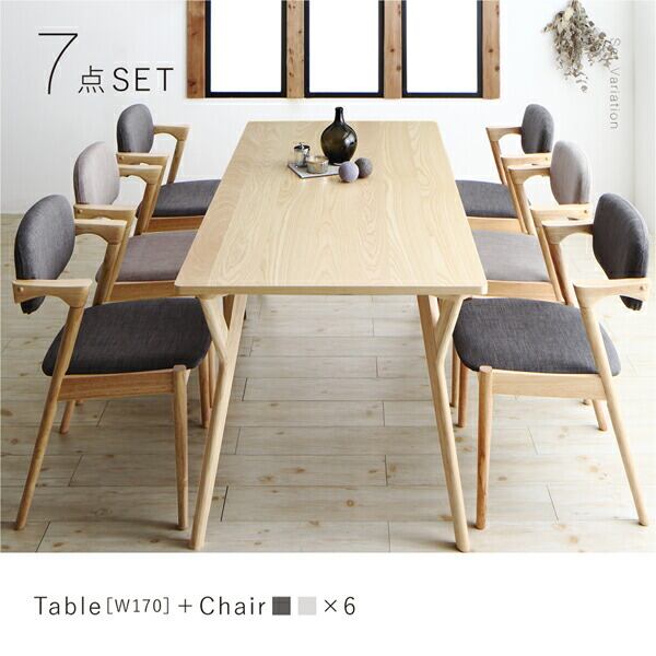 組立設置付き 北欧ナチュラルモダンデザイン天然木ダイニングセット 7点セット(テーブル+チェア6脚) W170