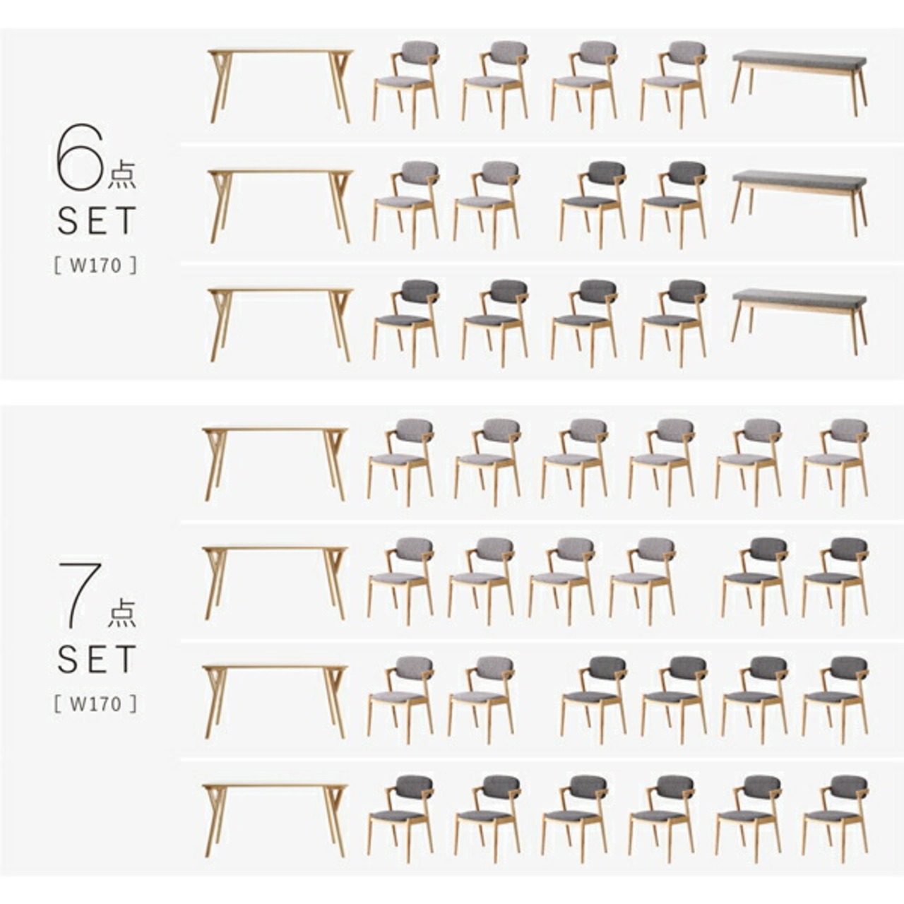 ダイニング7点セット(テーブル+チェア6脚) W170 組立設置付