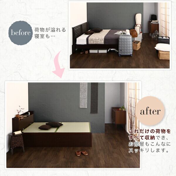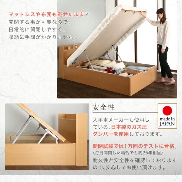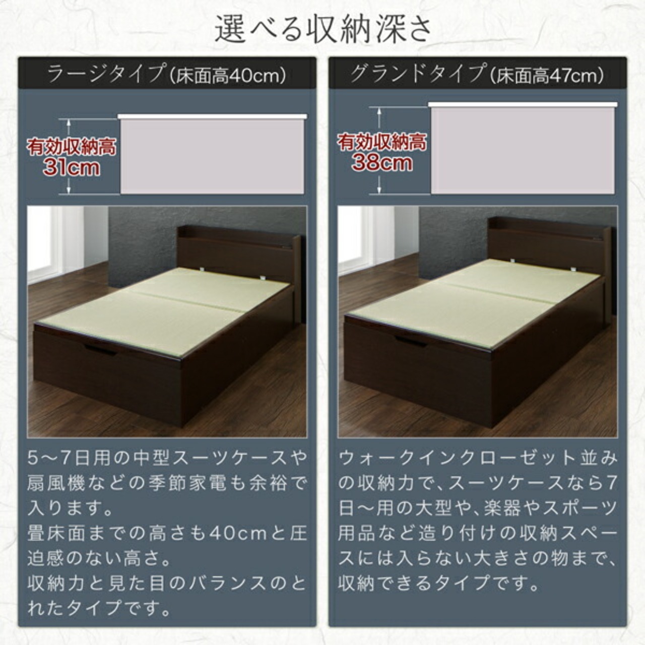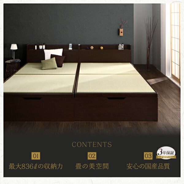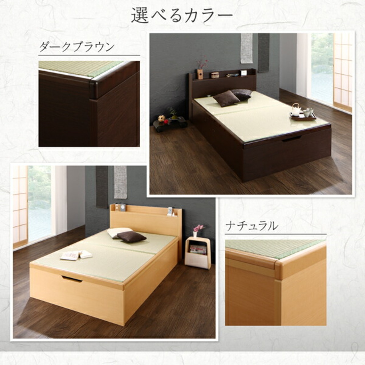 組立設置付 シンプルモダンデザイン大容量収納日本製棚付きガス圧式跳ね上げ畳ベッド 国産畳 セミダブル 深さグランド