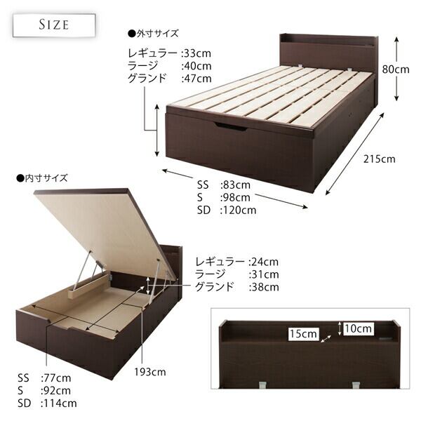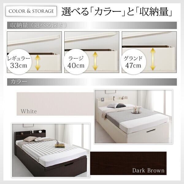 組立設置付 1台で3役使える 国産頑丈すのこ跳ね上げ式大容量収納ベッド Long force ロングフォルス シングル 深さラージ