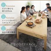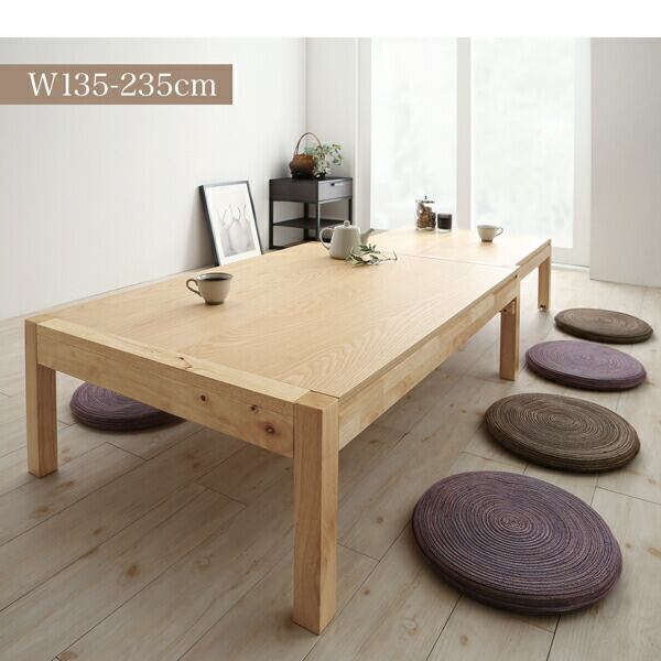 組立設置付き スライド伸縮 エクステンションリビングテーブル W135-235