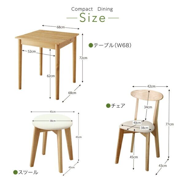 組立設置付き 1Kでも置ける横幅68cmコンパクトダイニングセット スツール ナチュラル 1P