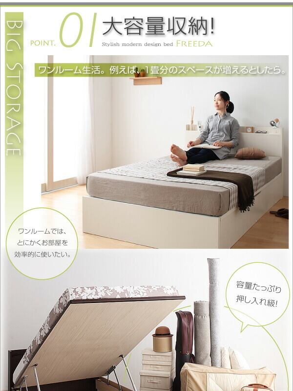 組立設置付 国産跳ね上げ収納ベッド 薄型スタンダードボンネルコイルマットレス付き 横開き シングル 深さラージ