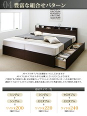 組立設置付 連結 棚・コンセント付収納ベッド ベッドフレームのみ B(S)+A(SD)タイプ ワイドK220