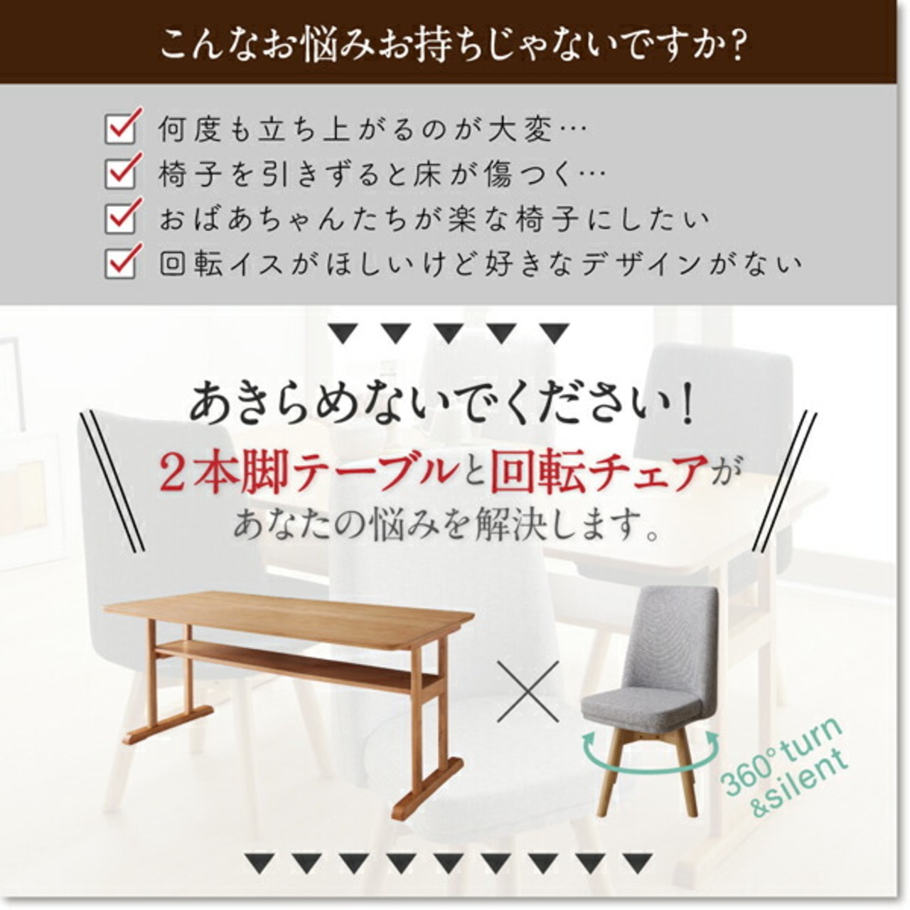 組立設置付き 回転イス付き 北欧デザイン2本脚ダイニングテーブルセット ダイニングテーブル W150