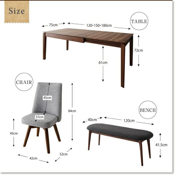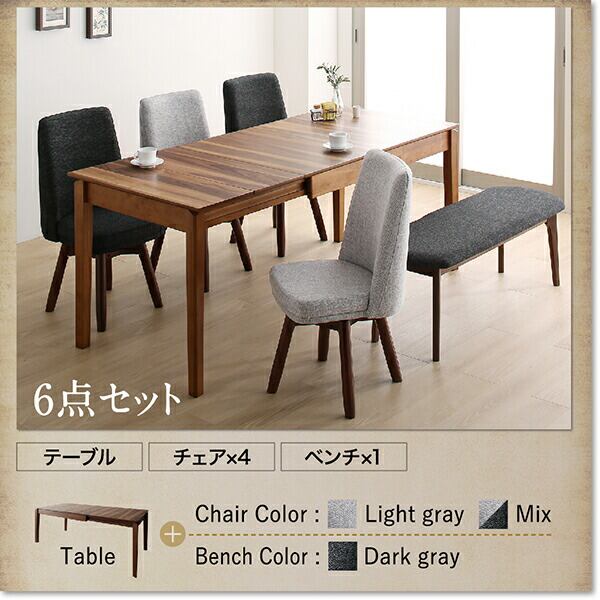 組立設置付き 回転イス付き ウォールナット3段階伸縮ダイニングセット 4点セット(テーブル+チェア2脚+ベンチ1脚) W120-180