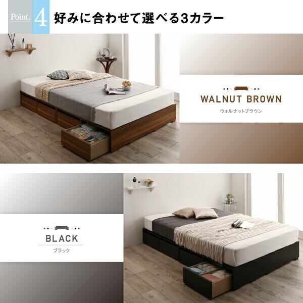 組立設置付き 選べる引出収納付きシンプルデザインローベッド スタンダードボンネルコイルマットレス付き 引き出し4杯 セミダブル