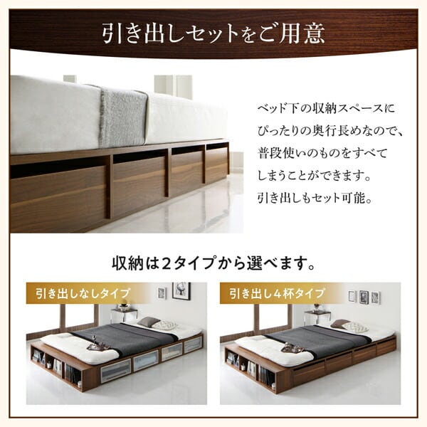組立設置付き 衣装ケースも入る大容量デザイン収納ロングサイズベッド 引き出しなし シングル ロング丈