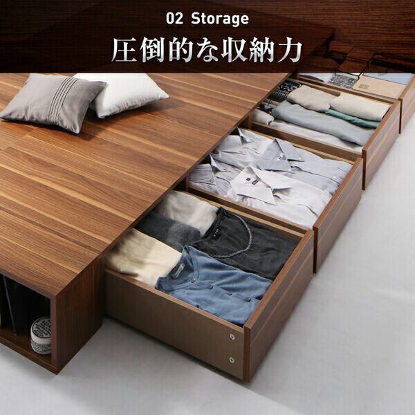 組立設置付き 衣装ケースも入る大容量デザイン収納ロングサイズベッド 引き出し4杯 セミダブル ロング丈