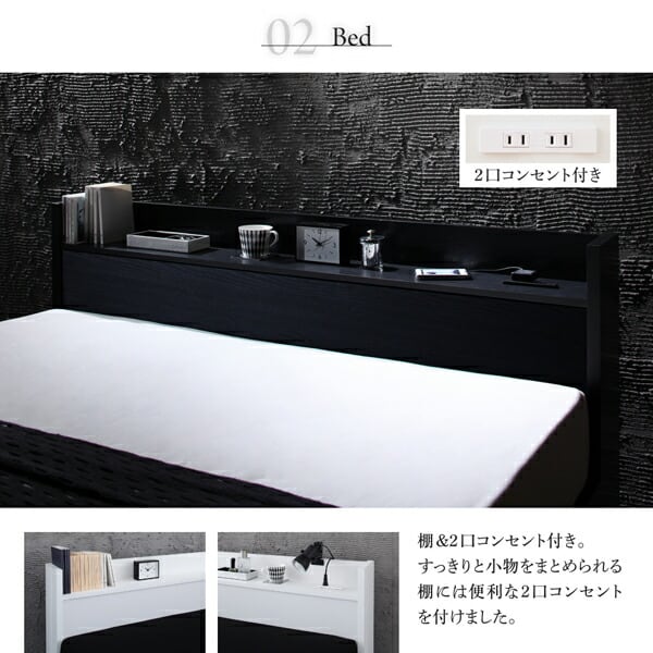 組立設置付き セットで決める 棚・コンセント付本格ホテルライクベッド スタンダードポケットコイルマットレス付き ボックスシーツ付 セミダブル