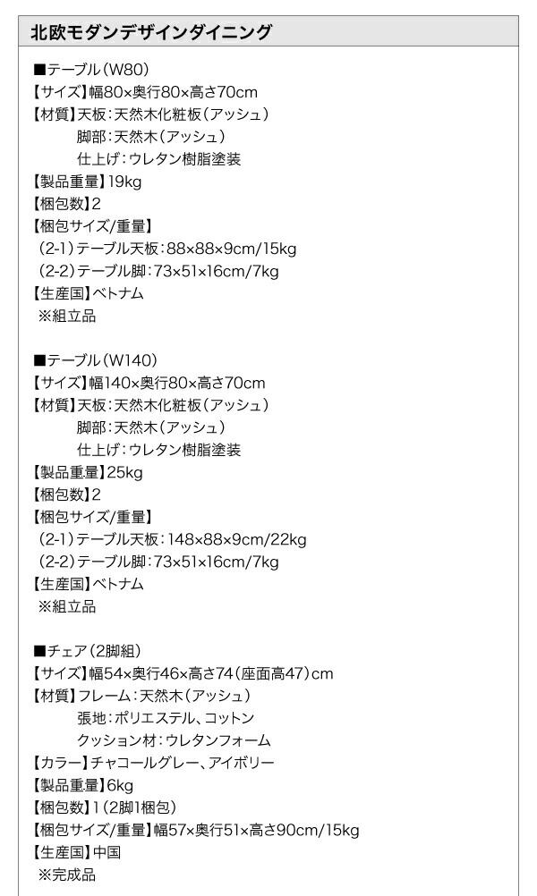 組立設置付き 北欧モダンデザインダイニング 3点セット(テーブル+チェア2脚) W140