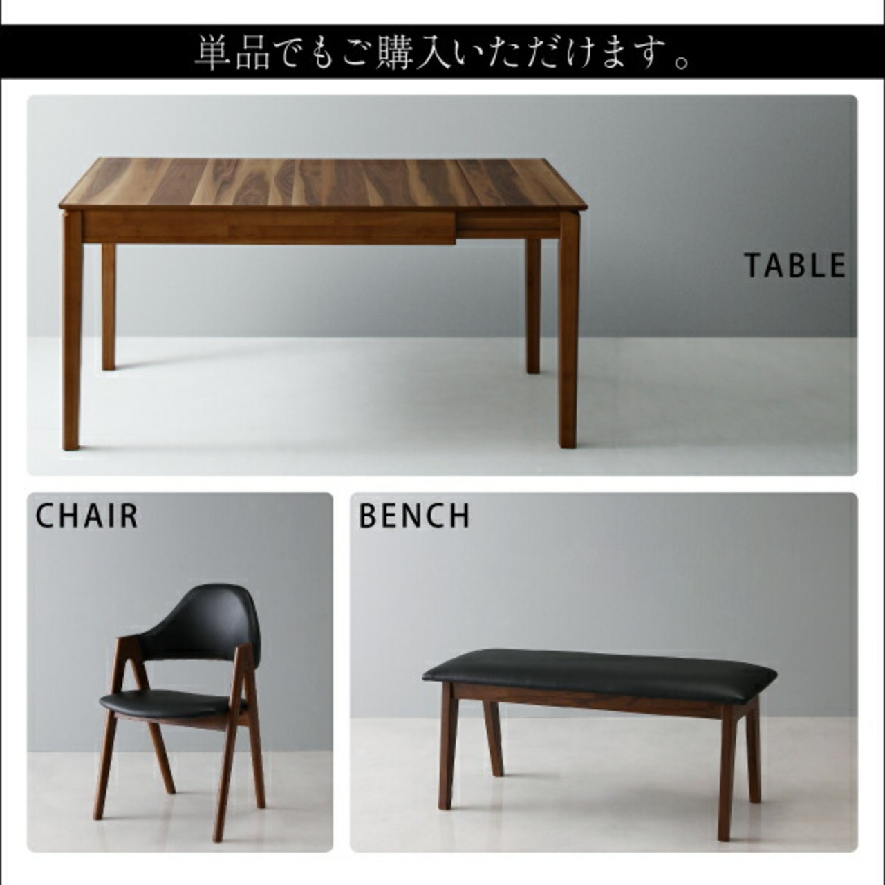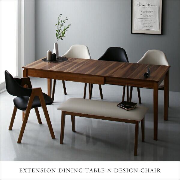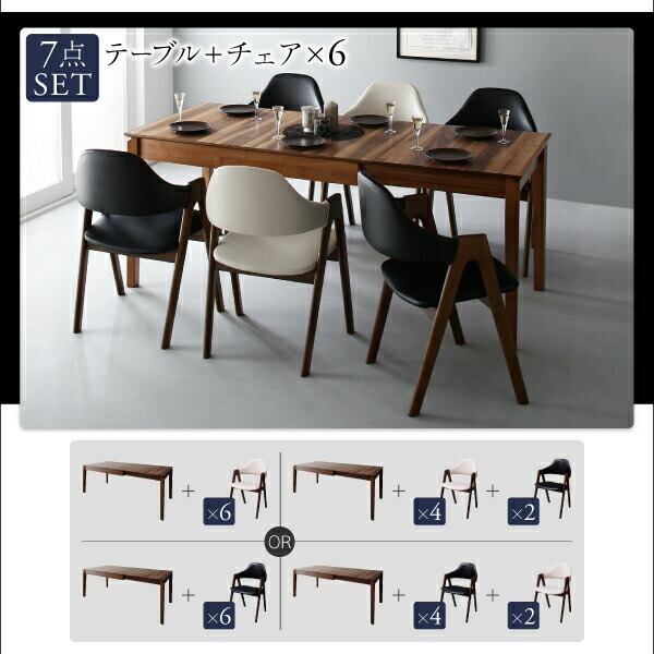組立設置付き 天然木ウォールナット材モダンデザイン伸縮式ダイニングセット 7点セット(テーブル+チェア6脚) W120-180