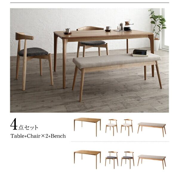 組立設置付き 天然木オーク無垢材テーブル北欧モダンデザインダイニング 5点セット(テーブル+チェア4脚)