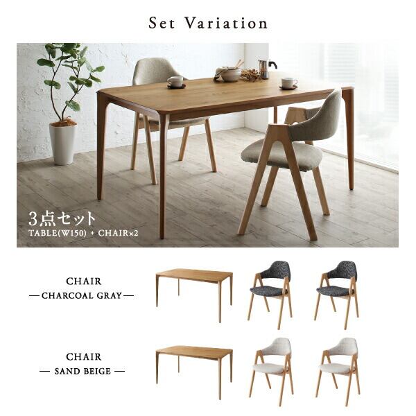 組立設置付き 天然木オーク無垢材ダイニング 4点セット(テーブル+チェア2脚+ベンチ1脚) W150