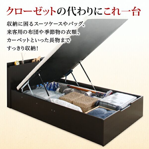 組立設置付 通気性抜群 すのこ構造 棚コンセント付 跳ね上げベッド ベッドフレームのみ セミシングル 深さラージ