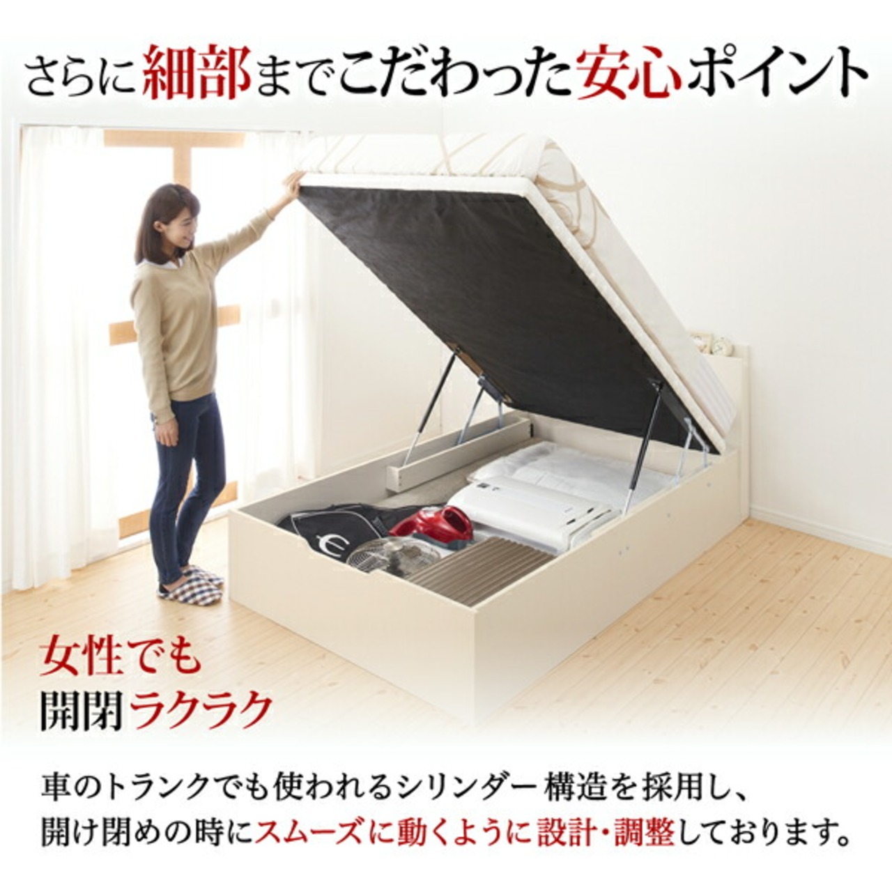 組立設置付 通気性抜群 すのこ構造 棚コンセント付 跳ね上げベッド ベッドフレームのみ セミダブル 深さラージ