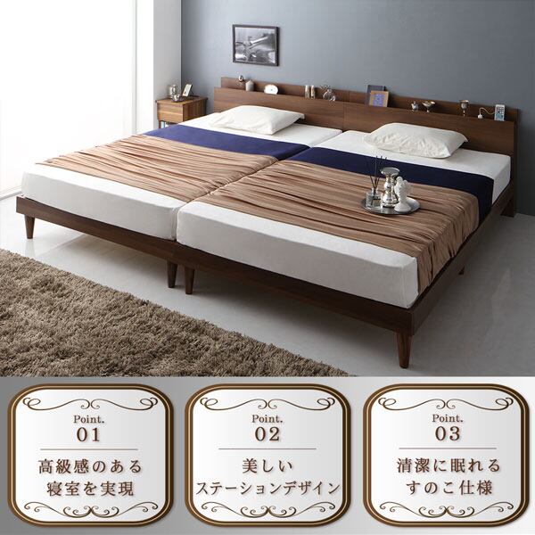 組立設置付き 棚・コンセント付きツインすのこベッド スタンダードポケットコイルマットレス付き ツイン(S+SD)