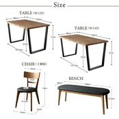 ダイニング5点セット(テーブル+チェア4脚) W150 組立設置付