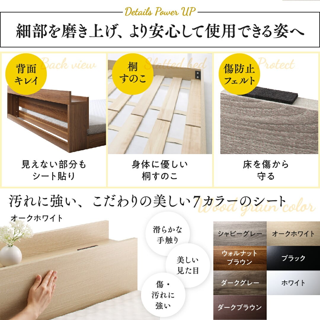 組立設置付き ベッド 棚コンセント付き ロータイプ ベッドフレームのみ セミダブル