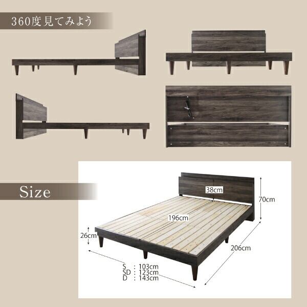 組立設置付き 棚・コンセント付きデザインすのこベッド スタンダードポケットコイルマットレス付き セミダブル
