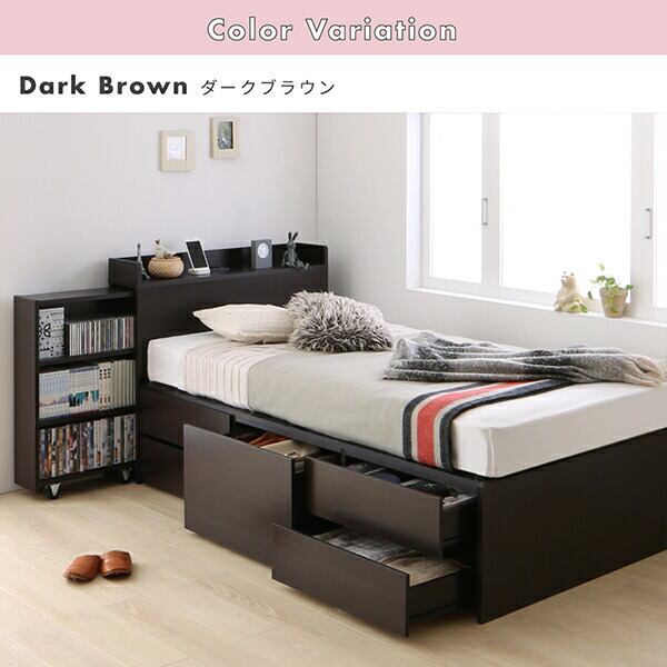 組立設置付 スライド収納付き コンパクトチェストベッド ベッドフレームのみ シングル ショート丈