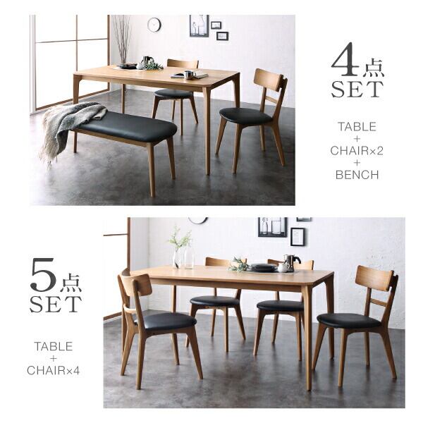 組立設置付き 天然木オーク無垢材 モダンデザインダイニング 5点セット(テーブル+チェア4脚) W150