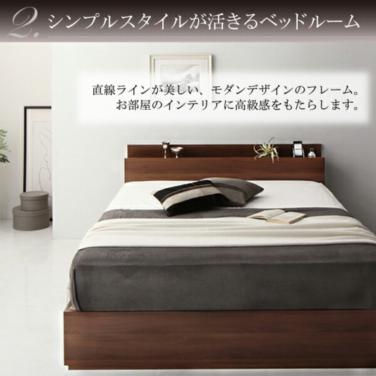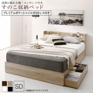 組立設置付き 清潔に眠れる棚・コンセント付きすのこ収納ベッド プレミアムポケットコイルマットレス付き セミダブル