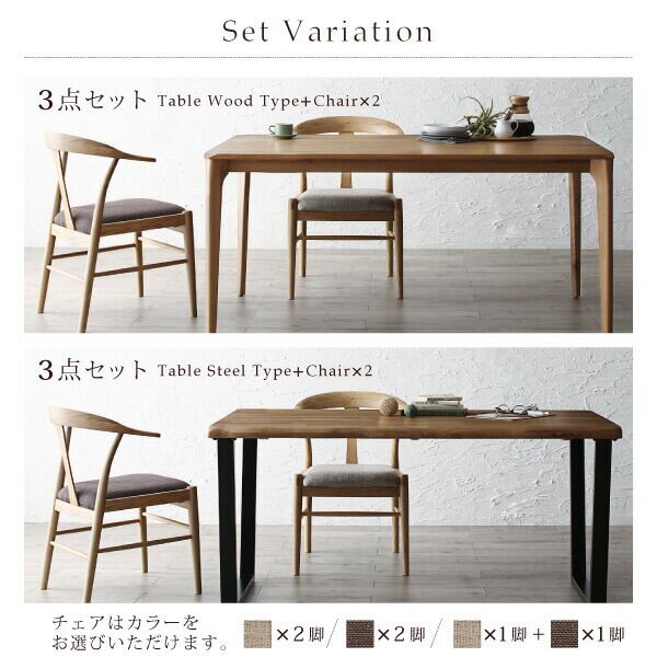 組立設置付き 選べる無垢材テーブル デザインチェアダイニング 3点セット(テーブル+チェア2脚) W150