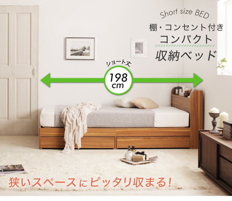 組立設置付き ショート丈収納ベッド スタンダードポケットコイルマットレス付き シングル ショート丈