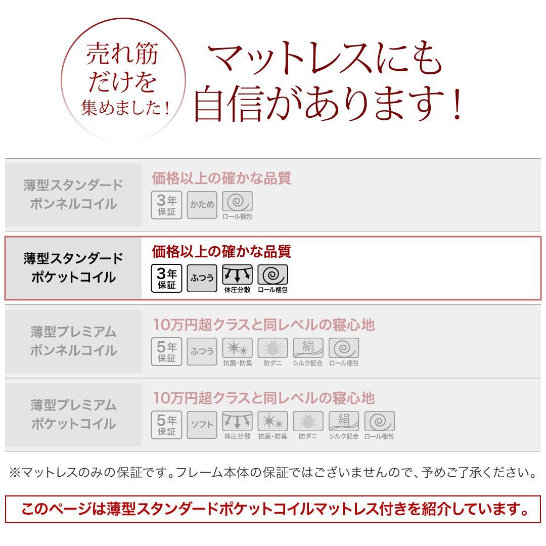 薄型スタンダードポケットコイルマットレス付き ハイタイプ 引き出し4杯 シングル 組立設置付