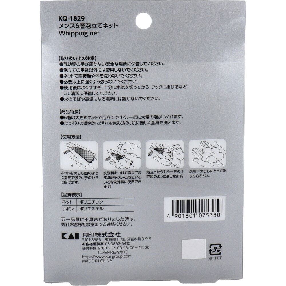 【2セット】 メンズ 6層泡立てネット 大きめサイズ KQ-1829 【pto】