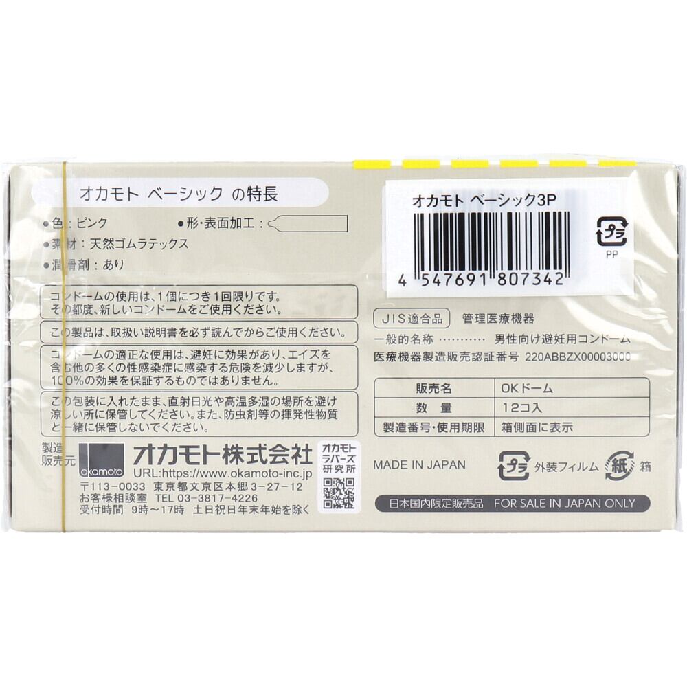 【2セット】 オカモト OKAMOTO BASIC コンドーム 12個入×3個パック 【pto】