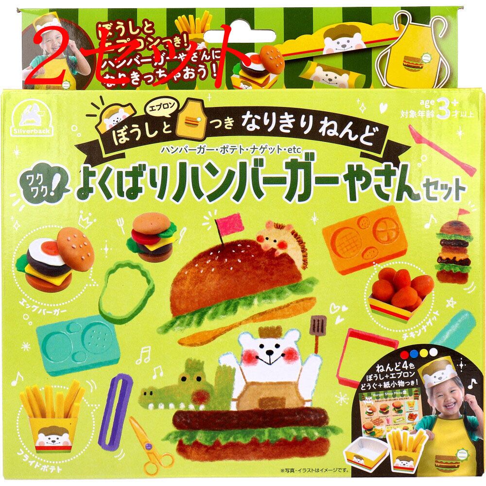 【2セット】 ぼうしとエプロンつき なりきりねんど ワクワク!よくばりハンバーガーやさんセット 【pto】