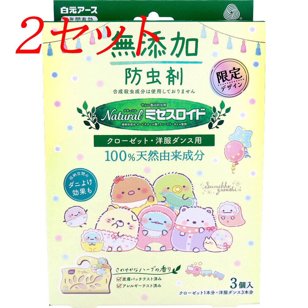 【2セット】 ナチュラル ミセスロイド クローゼット・洋服ダンス用 無添加防虫剤 1年間有効 すみっコぐらし 3個入 【pto】