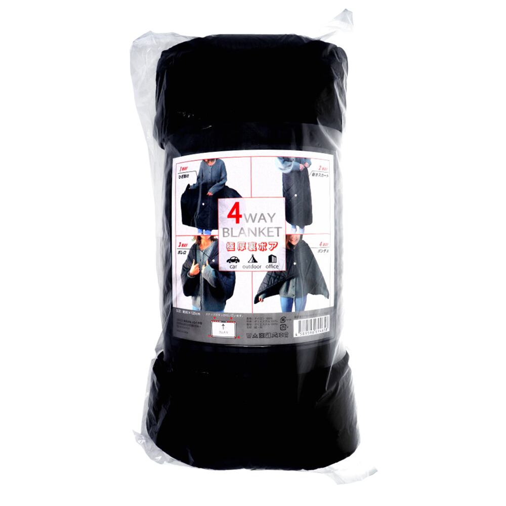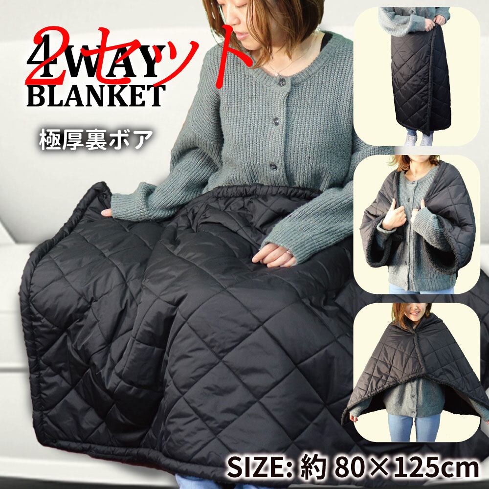 【2セット】 極厚裏ボア 4WAYブランケット 80×125cm ブラック 【pto】