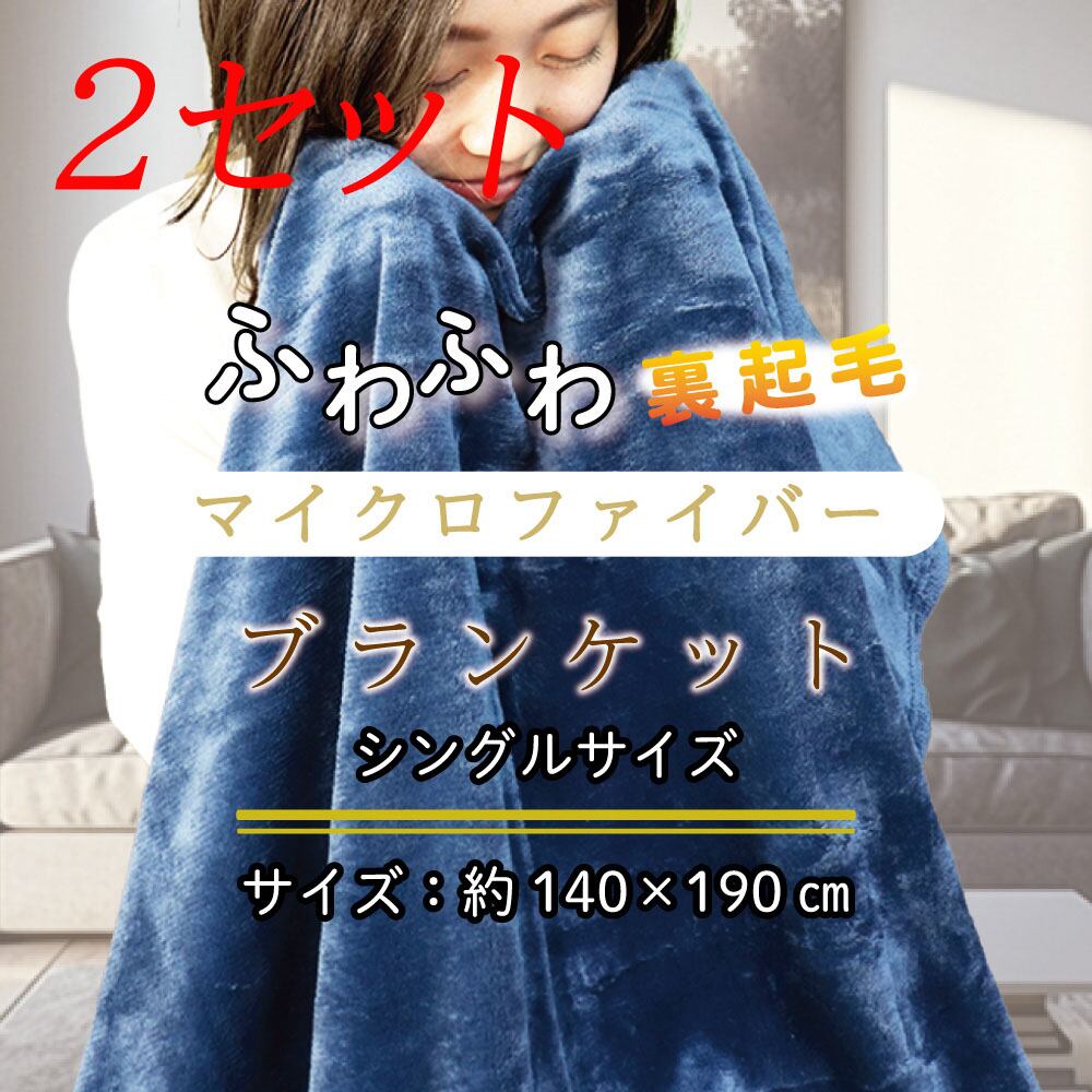 【2セット】 ふわふわマイクロファイバーブランケット Sサイズ 140×190cm ネイビー 【pto】