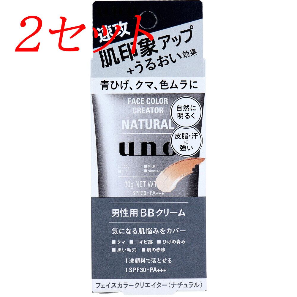 【2セット】 UNO(ウーノ) フェイスカラークリエイター 男性用BBクリーム ナチュラル SPF30 PA+++ 30g 【pto】