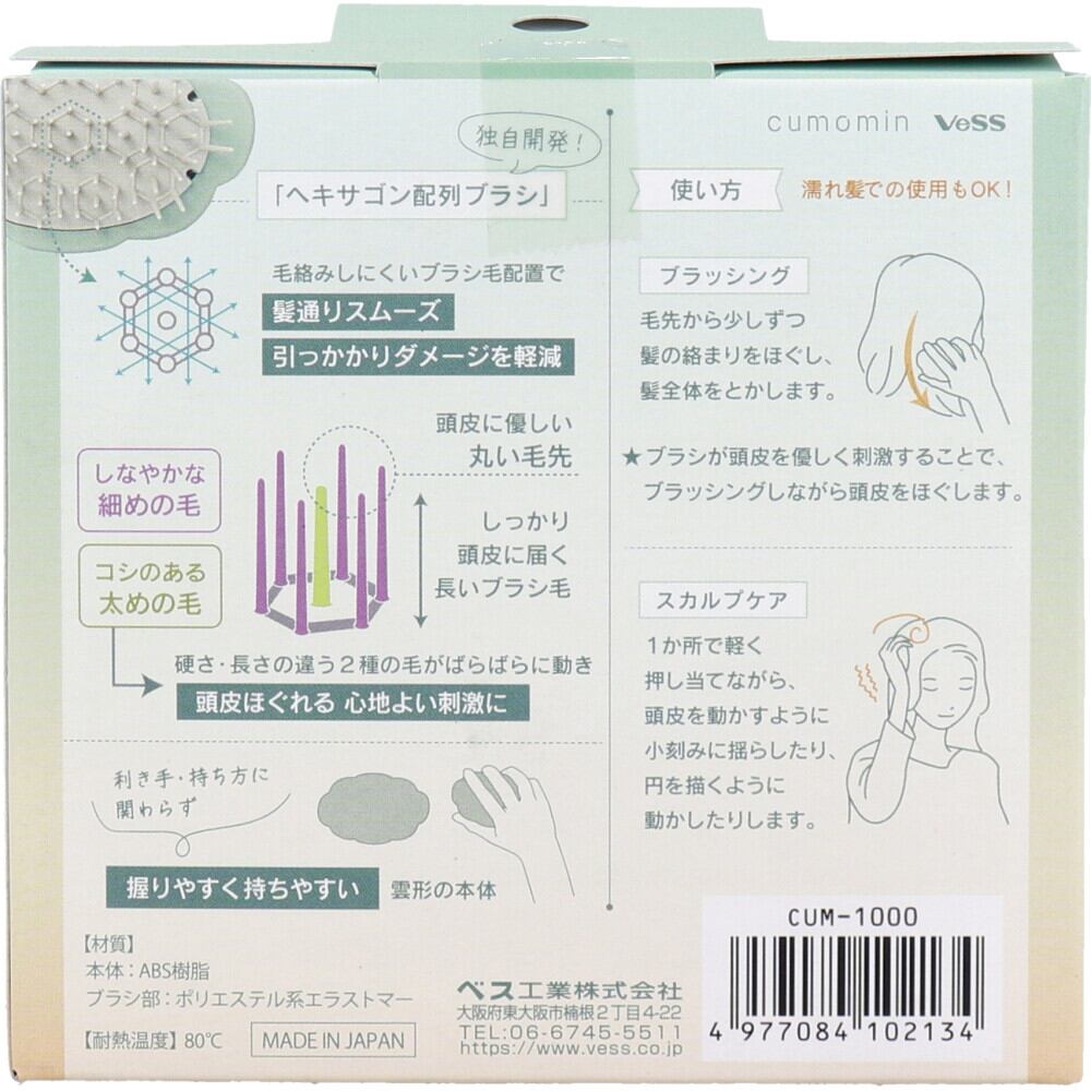 ●「ヘキサゴン配列ブラシ」。毛絡みしにくいブラシ毛配置で髪通りスムーズ。引っかかりダメージを軽減。