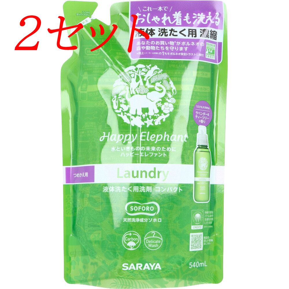【2セット】 ハッピーエレファント 液体洗たく用洗剤 コンパクト ラベンダー&ティーツリー 詰替用 540mL 【pto】