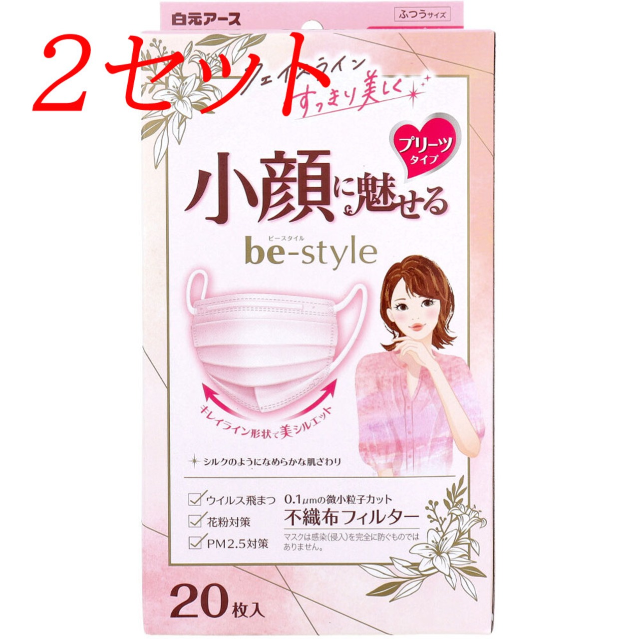 【2セット】 ビースタイル 小顔に魅せる プリーツタイプ ふつうサイズ ドーリーピンク 20枚入 【pto】