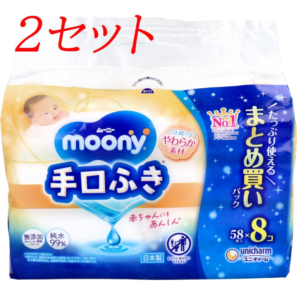 【2セット】 ムーニー 手口ふき 詰替用 58枚入×8個パック 【pto】
