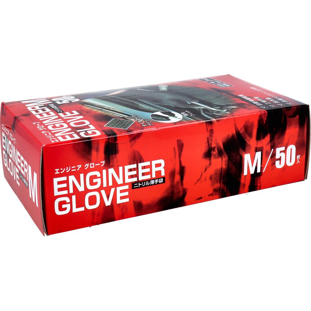 【2セット】 【業務用】エンジニア グローブ ニトリル薄手袋 粉なし 左右両用 ブラック Mサイズ 50枚入 【pto】