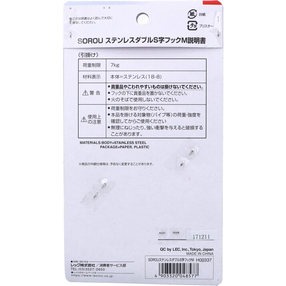 【2セット】 SOROU ステンレスダブルS字フック M 2個入 【pto】