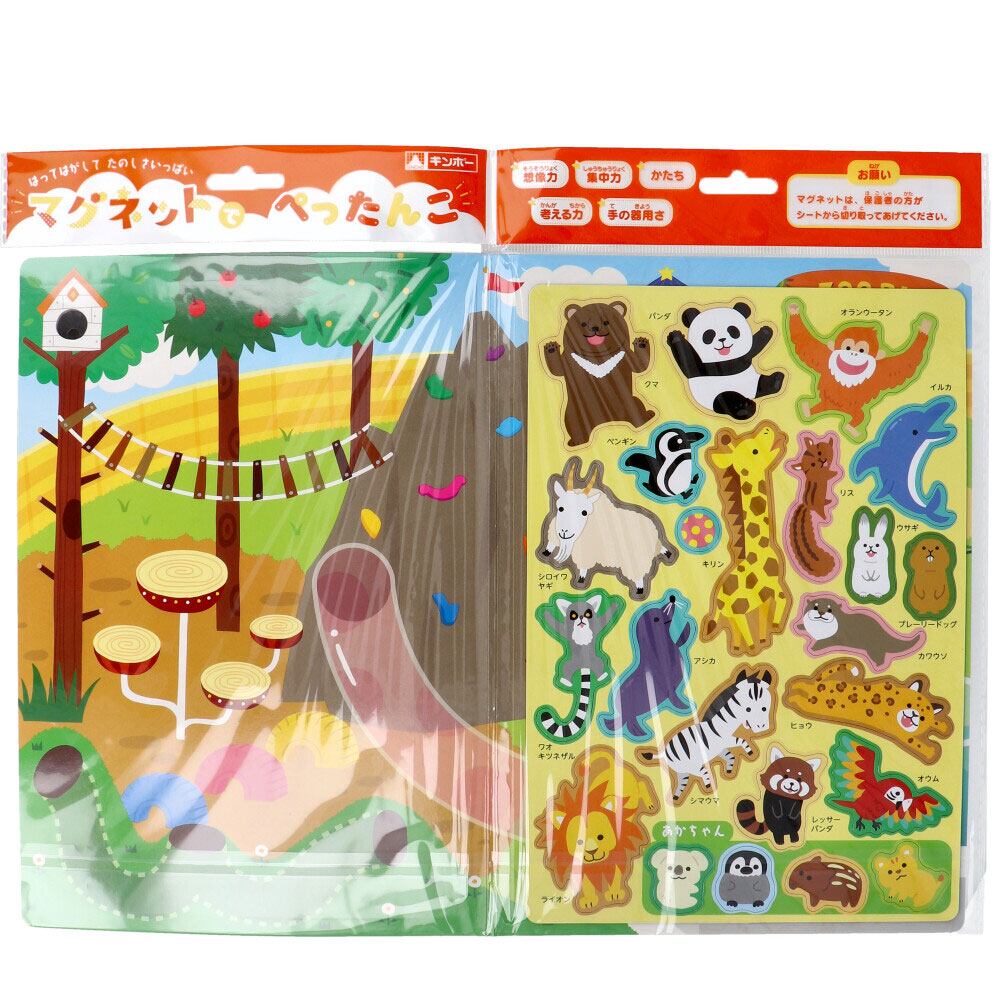 貼ってはがして繰り返し遊べるマグネットの絵本です。イラストに合わせてマグネットを貼りつけて遊べます。想像力・集中力・考える力・手の器用さを育みます。