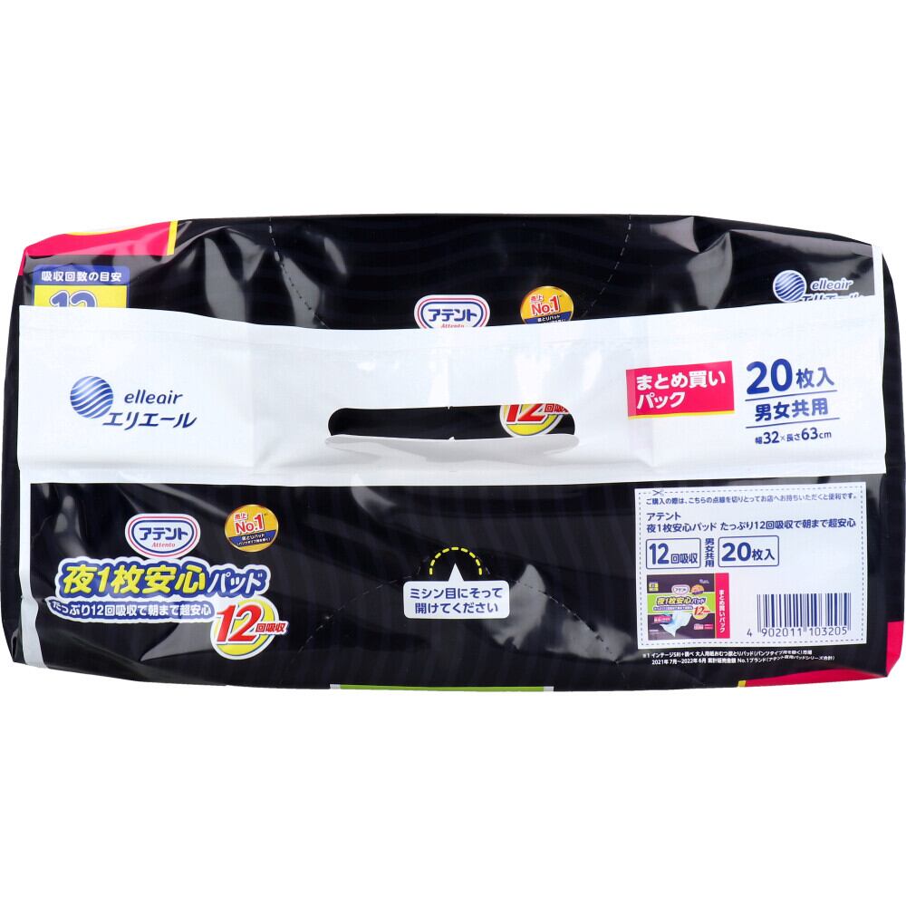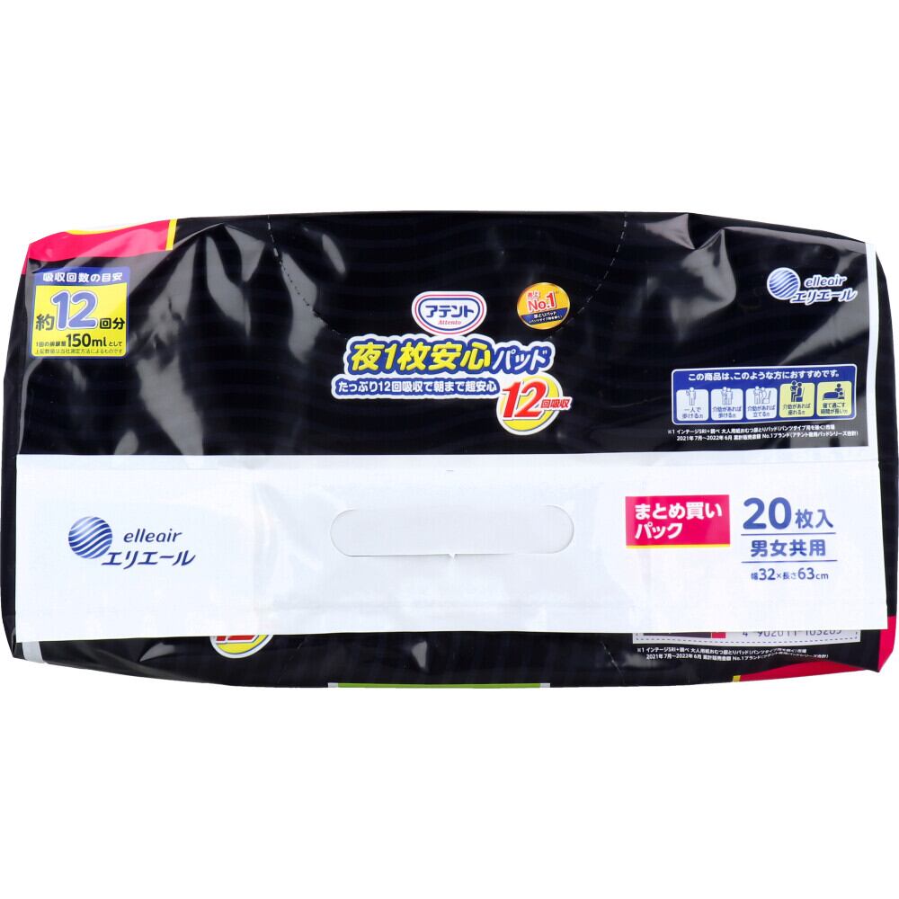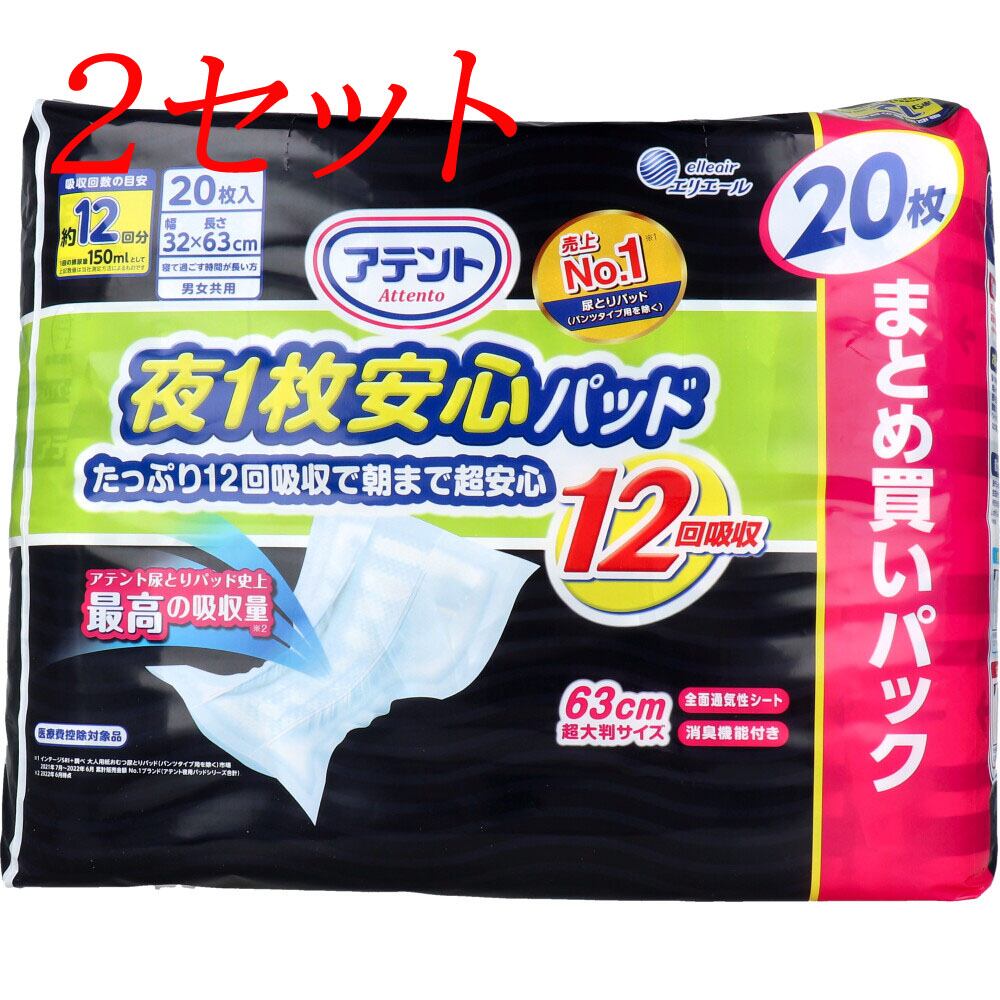 【2セット】 アテント 夜1枚安心パッド たっぷり12回吸収で朝まで超安心 12回吸収 20枚 【pto】